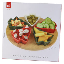 Set 4 boluri din ceramica cu suport din bambus 39×12 CM, Serving Set