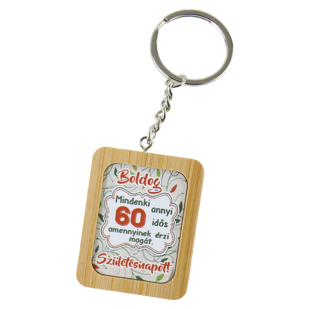 Breloc din bambus „Boldog 60. Szuletesnapot!” 4×5 CM