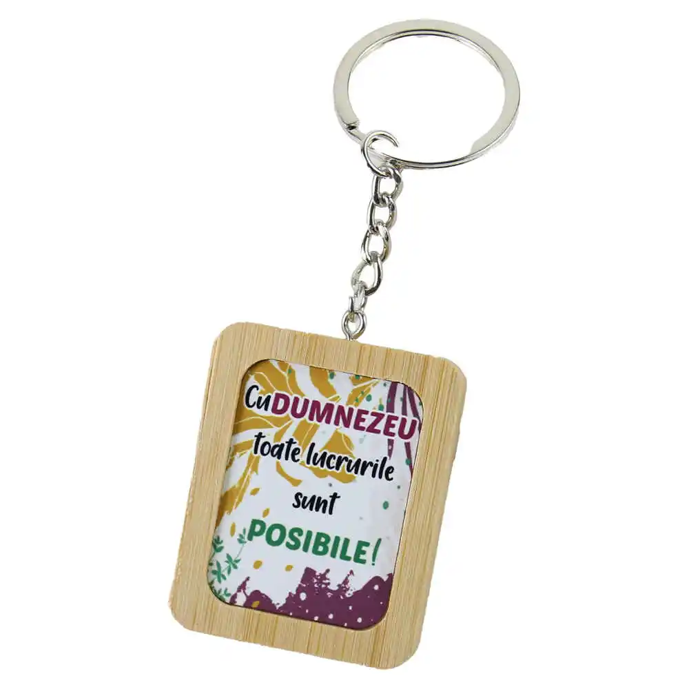 Breloc din bambus „Cu Dumnezeu toate lucrurile sunt posibile!”, 4×5 CM