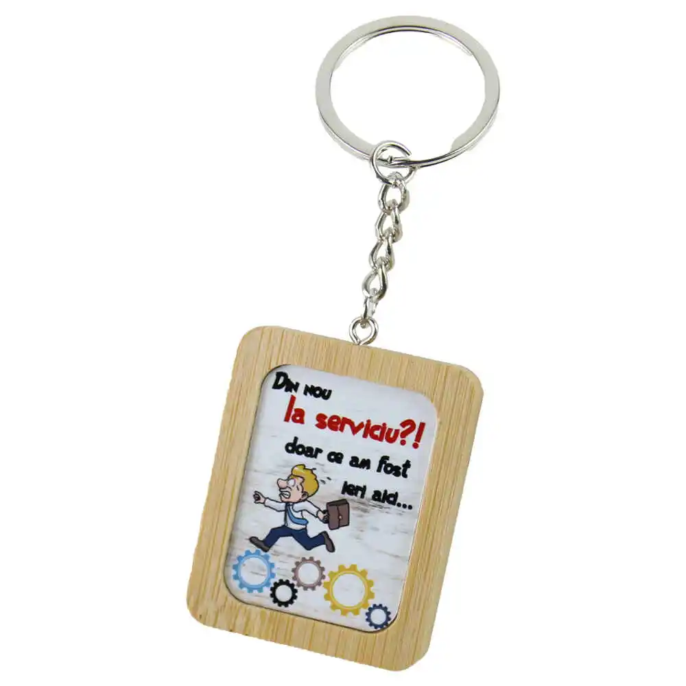 Breloc din bambus „Din nou la serviciu?!…”, 4×5 CM
