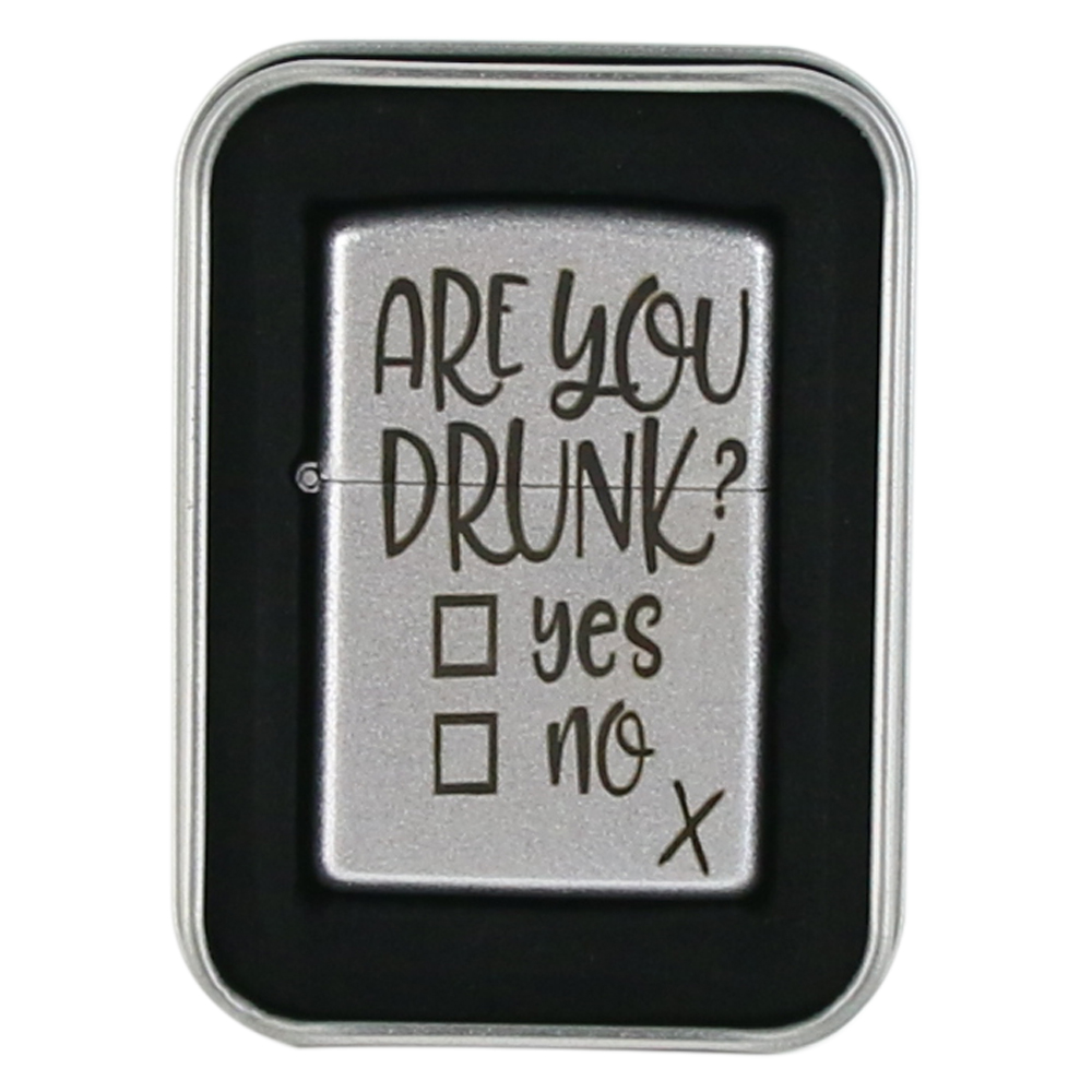Bricheta metalica „Are you drunk?”, 3.5×5.5 CM, Argintiu