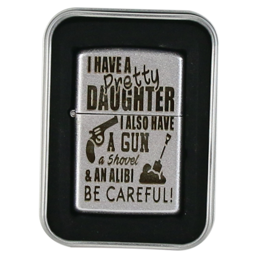 Bricheta metalica „I have a pretty daughter…” 3.5×5.5 CM, Argintiu