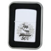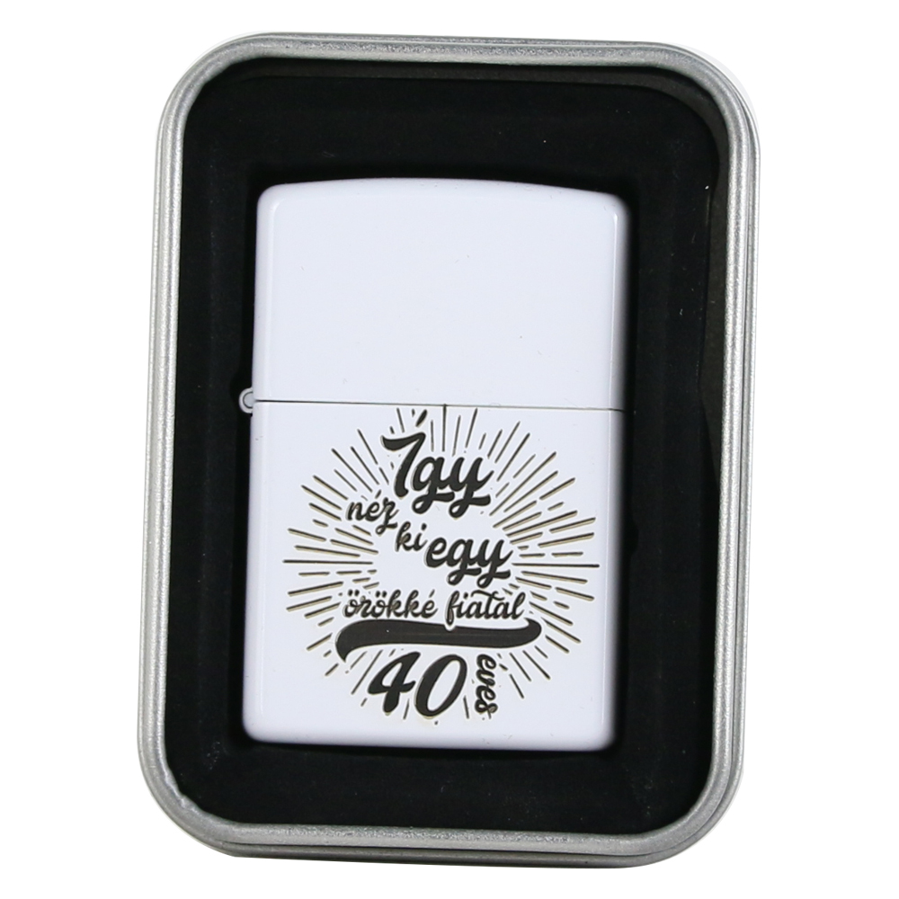 Bricheta metalica „Igy nez ki egy orokke fiatal 40 eves”, 3.5×5 CM, Alb
