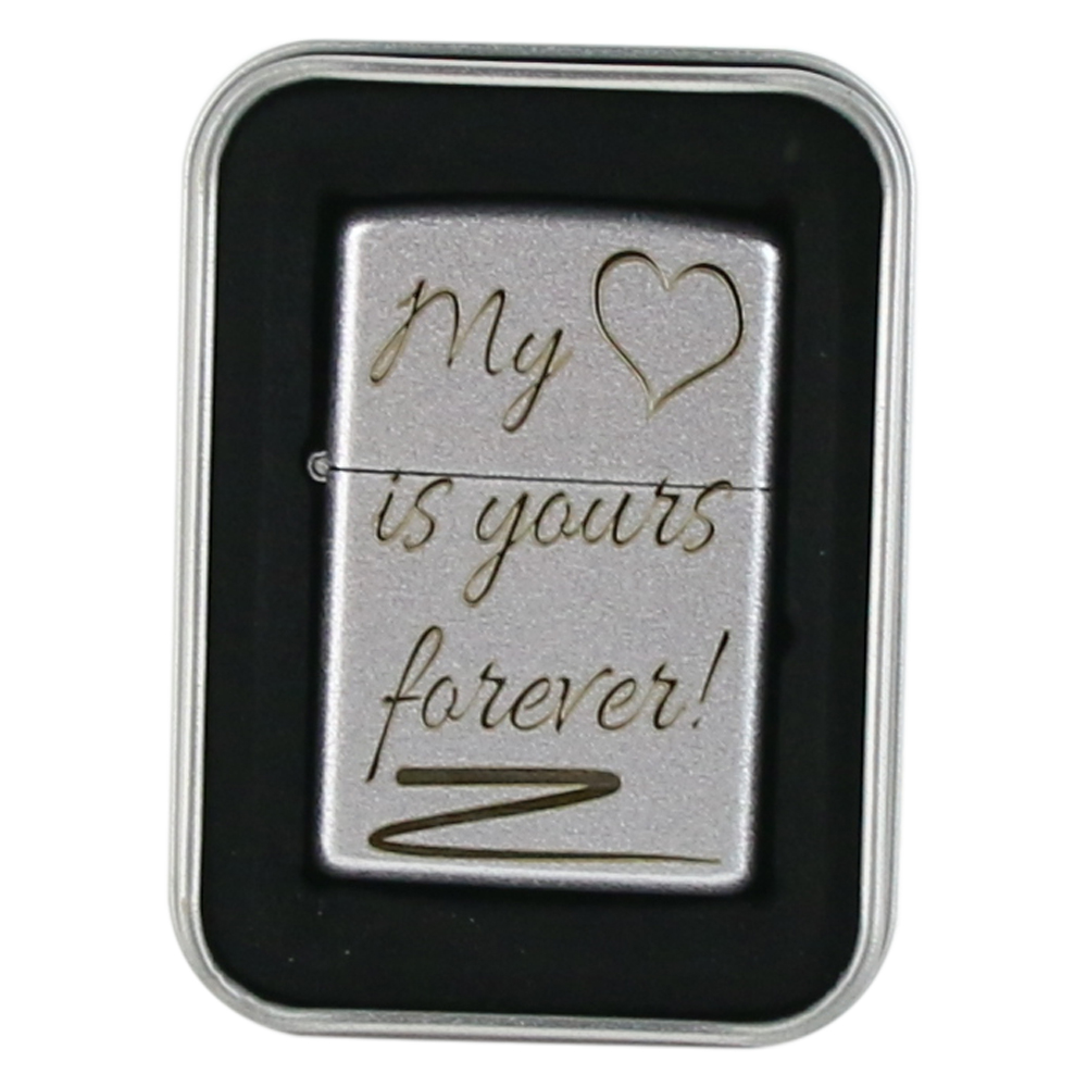 Bricheta metalica „My heart is yours forever.”, 3.5×5.5 CM, Argintiu