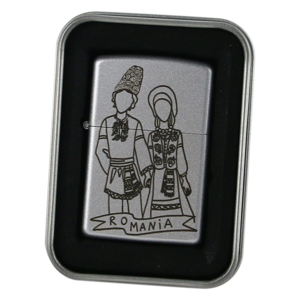 Bricheta metalica „Romania”, 4?5.5 CM, Cuplu in port popular