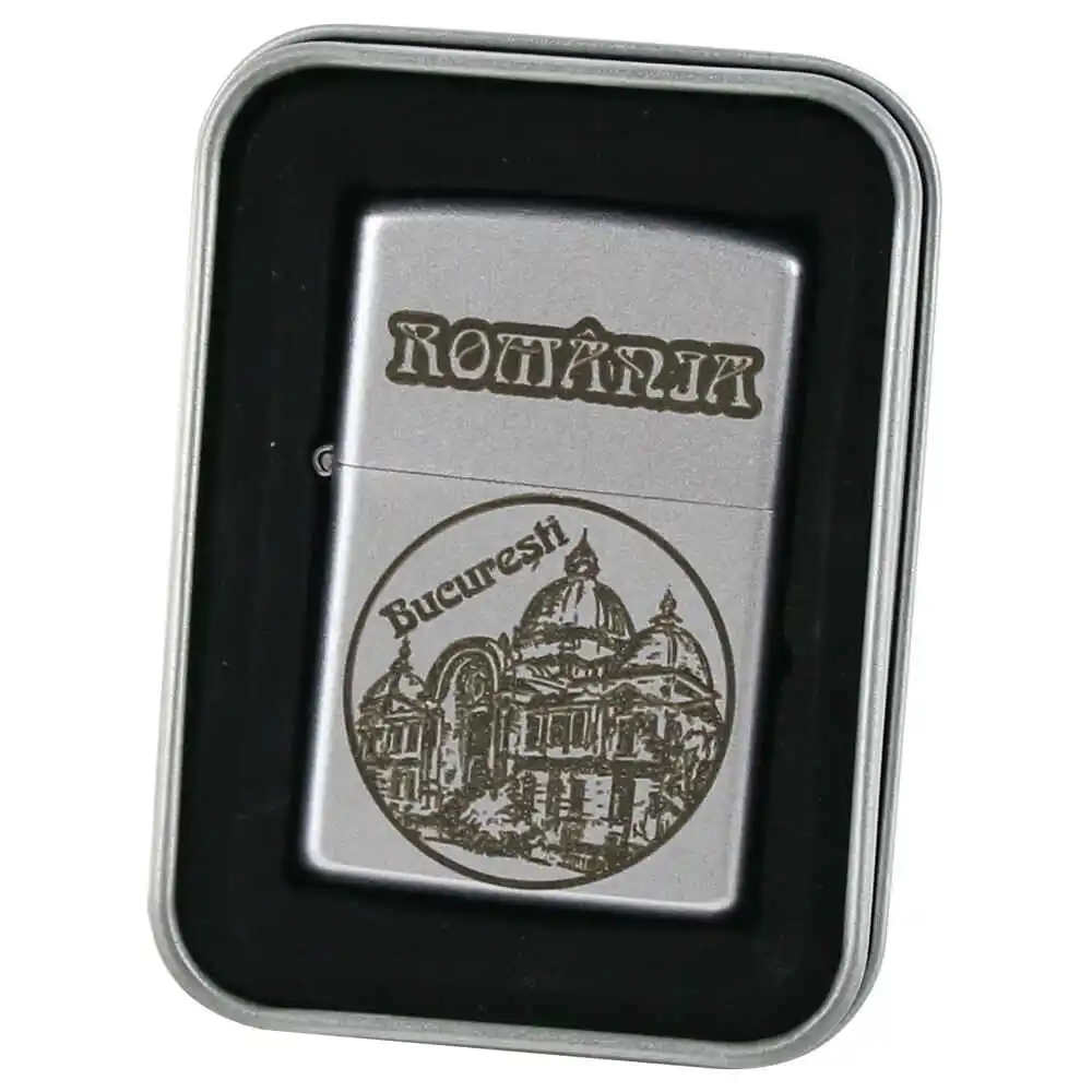 Bricheta metalica „Romania/Bucuresti”, 3×5 CM, argintiu