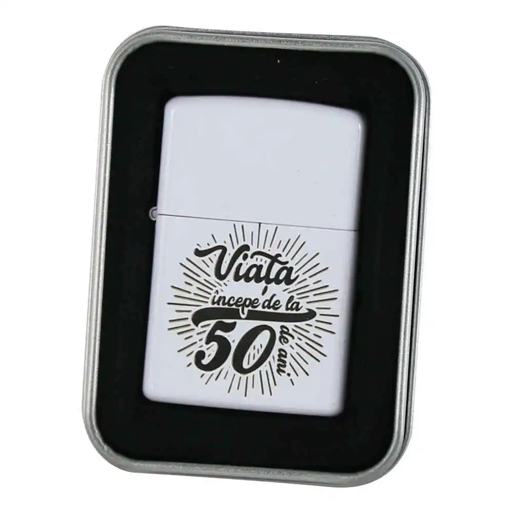 Bricheta metalica „Viata incepe de la 50 de ani”, 3.5×5 CM, Alb