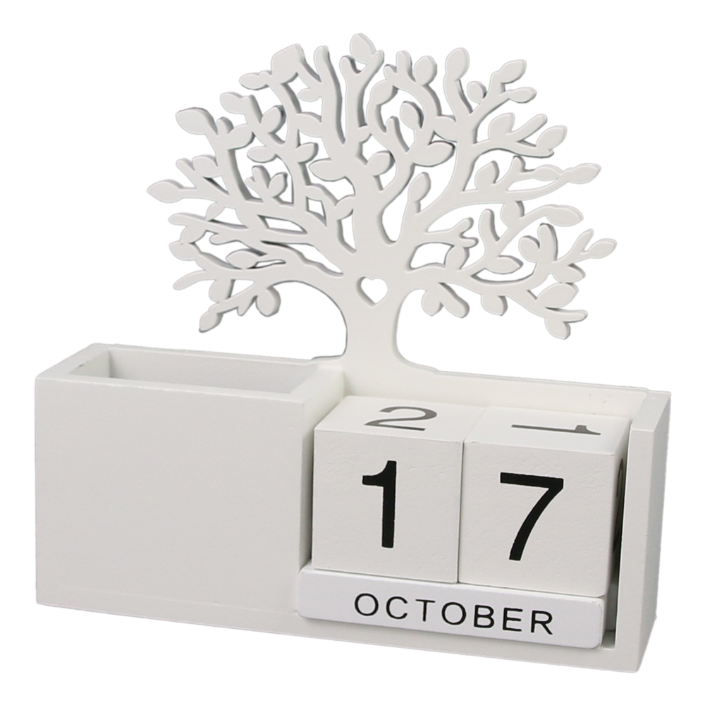 Calendar perpetuu din lemn, cu suport creioane 15×15 CM, Copac