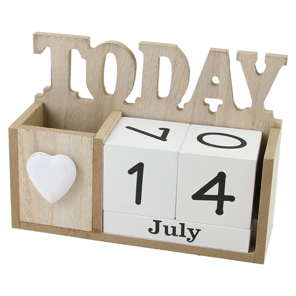 Calendar perpetuu din lemn, cu suport creioane 16×11 CM – Today