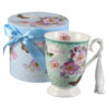 Cana ceramica 300 ml, cu franjuri, in cutie decorativa, Flori roz