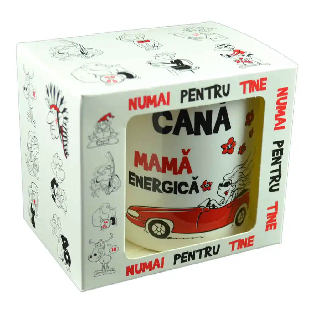 Cana ceramica 300 ml „Mama energica”, in cutie decorativa – Funny Mug
