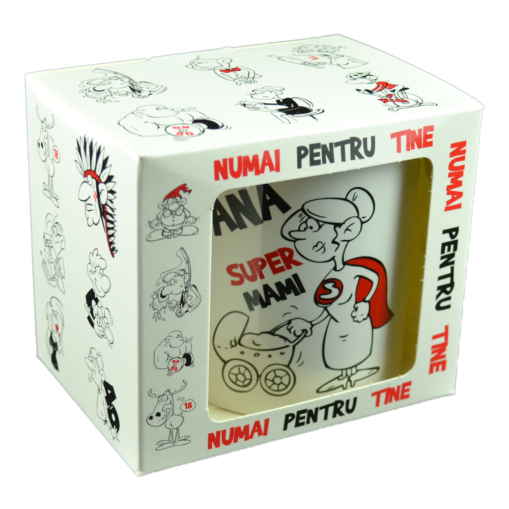 Cana ceramica 300 ml „Super mami”, in cutie decorativa – Funny Mug