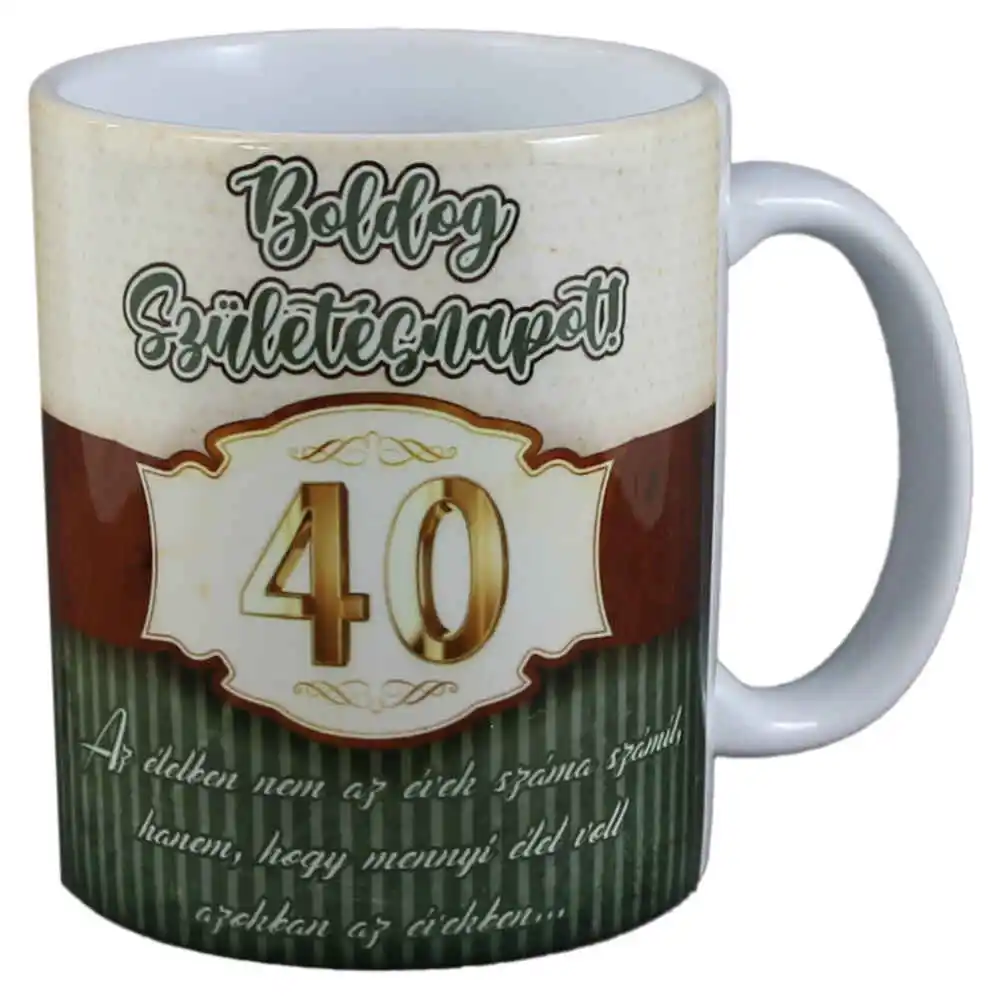 Cana ceramica „40 Boldog Szuletesnapot!”, 330 ml, verde/maro