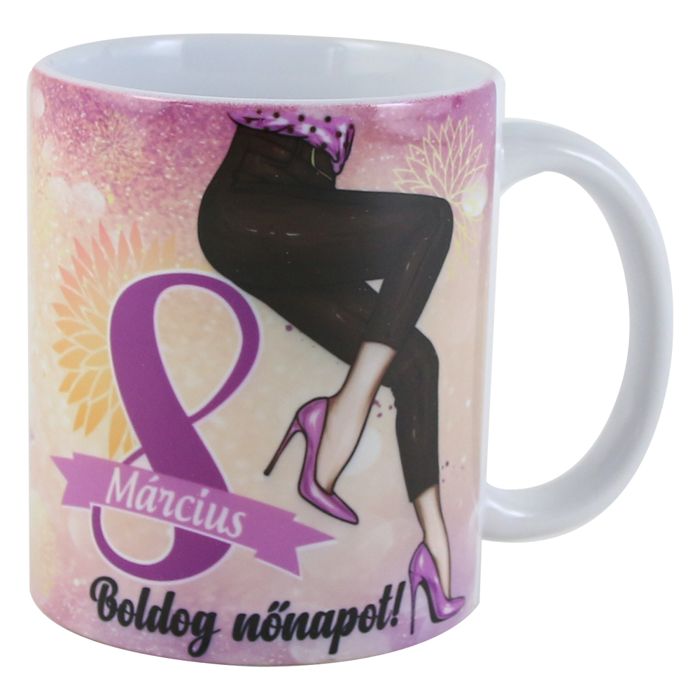 Cana ceramica „Boldog Nonapot…Marcius 8 „, 330 ml, mov