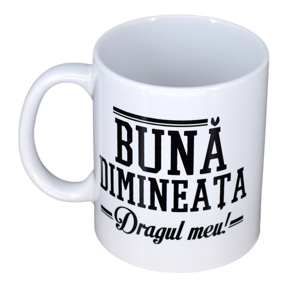Aceasta cana realiazata din ceramica si inscriptionata cu textul „Buna dimineata dragul meu!” este o cana ideala pentru a-l servi pe partenerului dumneavoastra cu ceaiul sau cafeaua de dimineata. Totodata aceasta cana poate fi si un cadou ideal pentru par