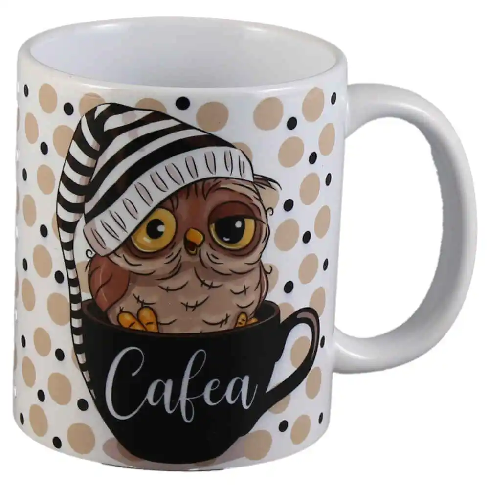 Cana ceramica „Cafea”, cu bufnita, 330 ml