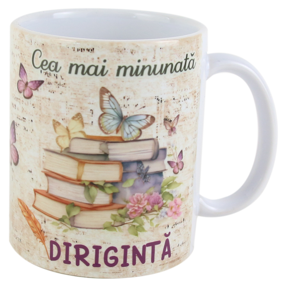 Cana ceramica „Cea mai minunata Diriginta” 330 ml, Carti cu flori