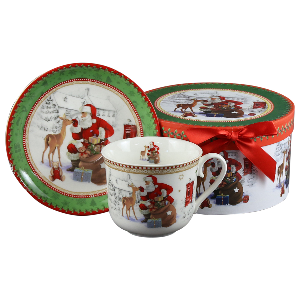 Cana ceramica cu farfurie 330 ml, Mos Craciun, in cutie decorativa