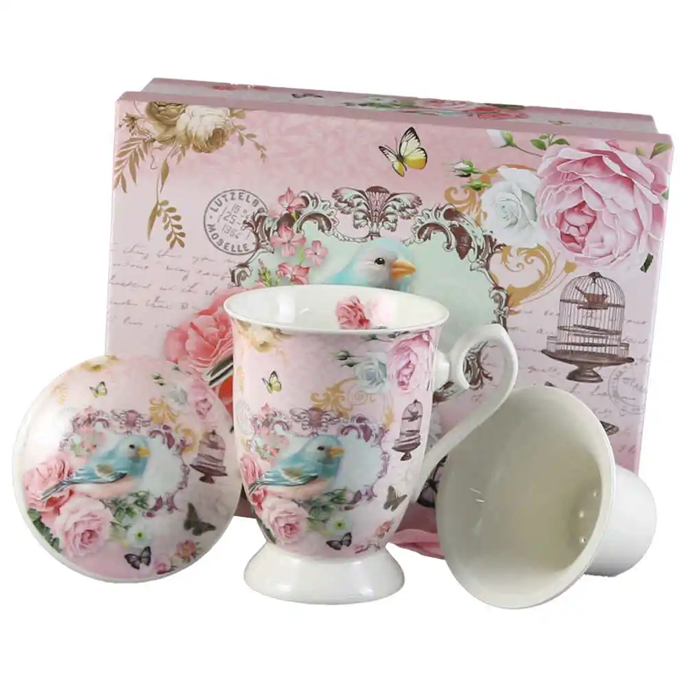 Cana ceramica cu infuzor si capac, 300 ml, Pasare, in cutie cadou