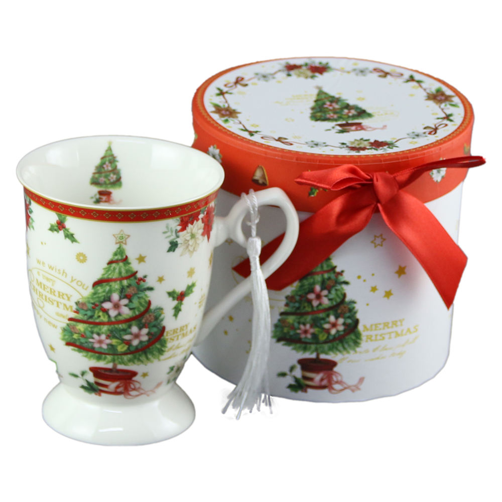 Cana ceramica cu snur, Brad, 300 ml, in cutie cadou