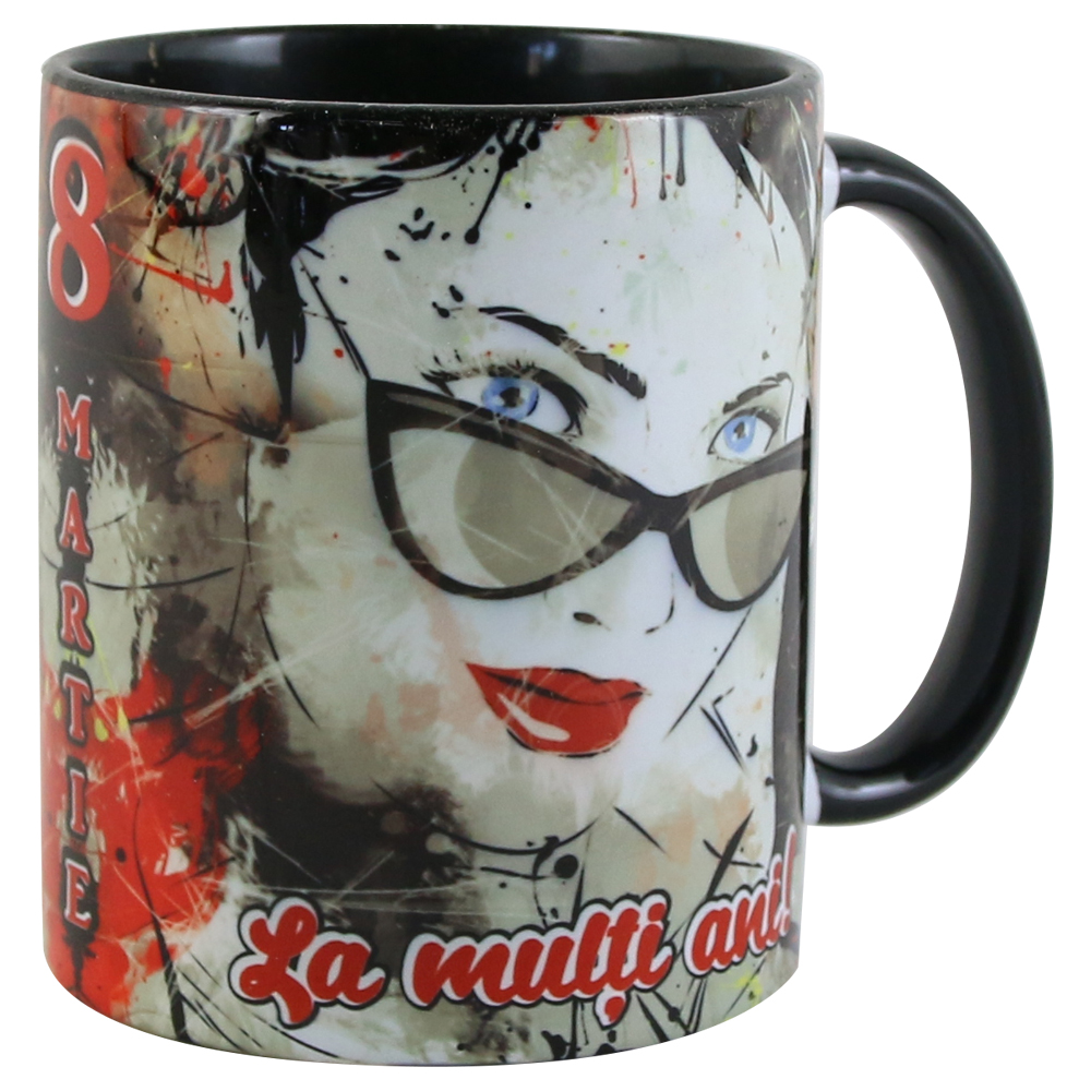 Cana ceramica „La multi ani! 8 Martie”, 330 ml, negru