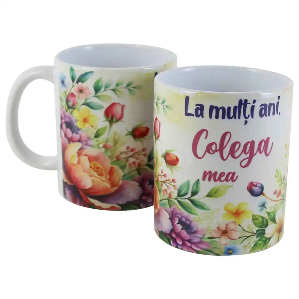 Cana ceramica „La multi ani, Colega mea”, 330 ml, flori