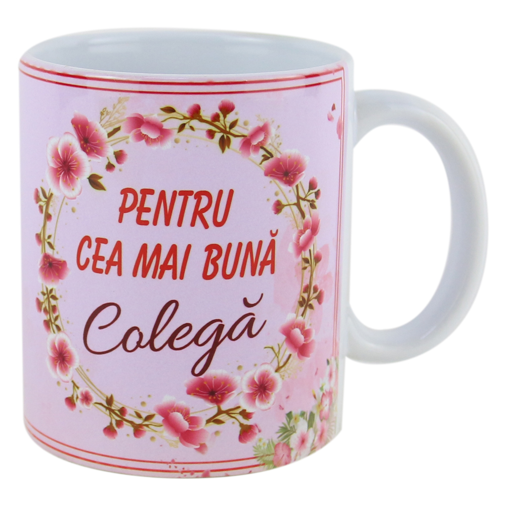 Cana ceramica „Pentru cea mai buna Colega” 330 ml, Roz