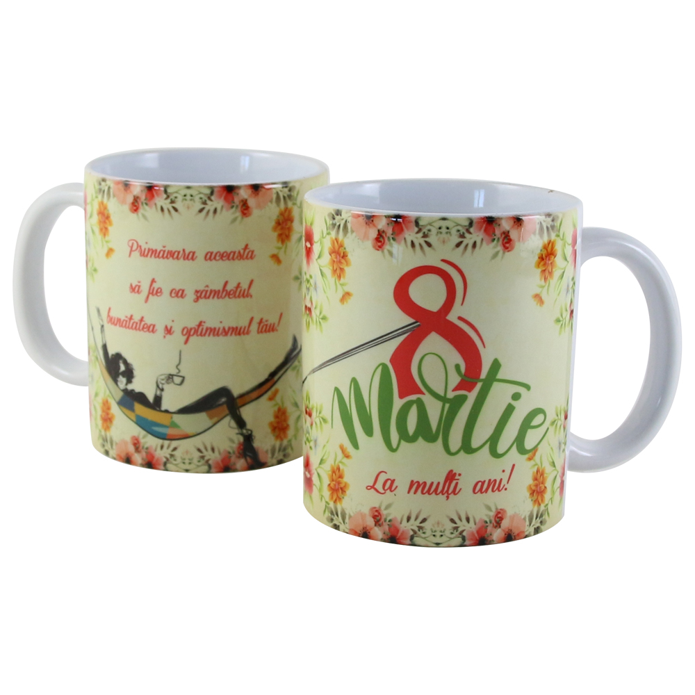 Cana ceramica „Primavara aceasta sa fie ca zambetul…8 Martie”, 330 ml