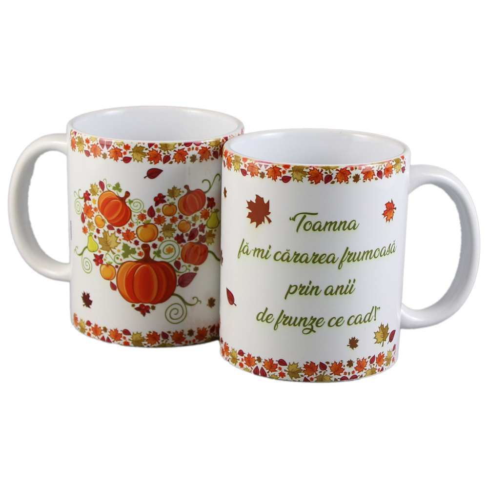Cana ceramica „Toamna fa-mi cararea…” 330 ml, cu dovlecei
