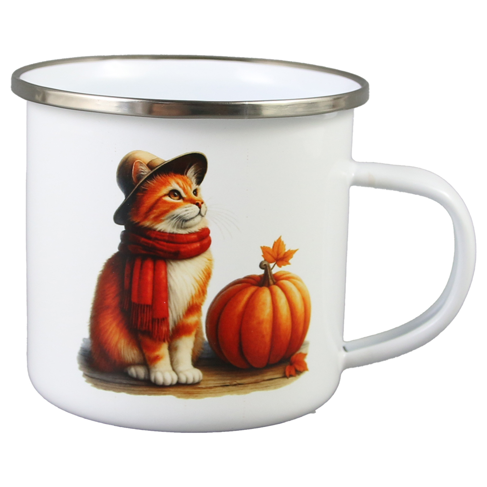 Cana metalica emailata 240 ml, Pisica cu dovleac