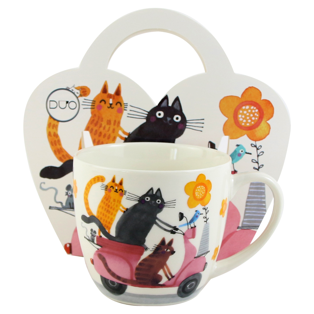 Cana portelan 460 ml „Cats World, On Scooter”, in ambalaj decorativ