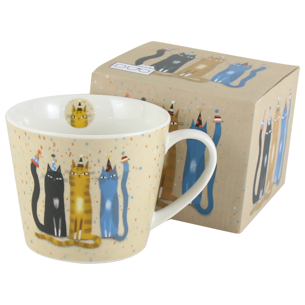 Cana portelan „Cats World, Party”, 600 ml, in cutie decorativa, Pisici