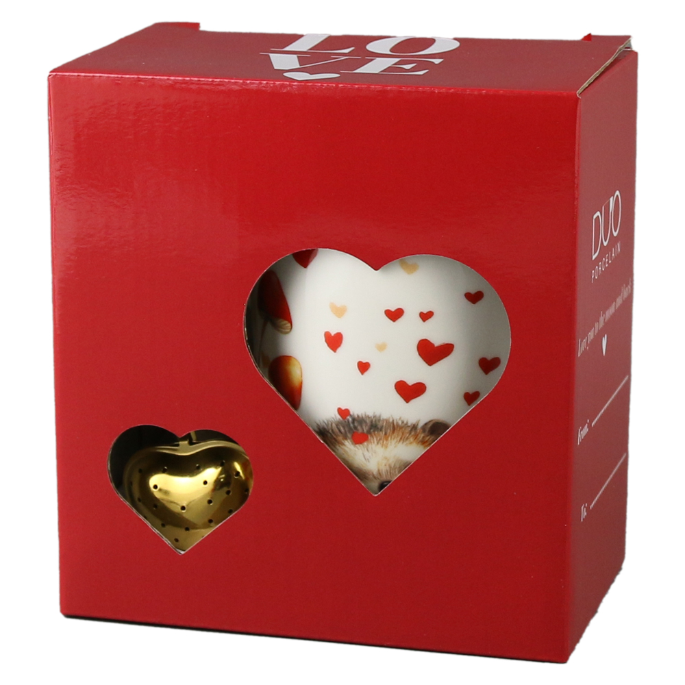 Cana portelan cu infuzor metalic inima, 360 ml, Arici cu inima, cu cutie cadou