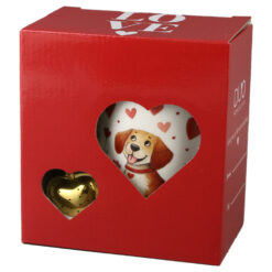 Cana portelan cu infuzor metalic inima, 360 ml, Catel cu inimioare, cu cutie cadou