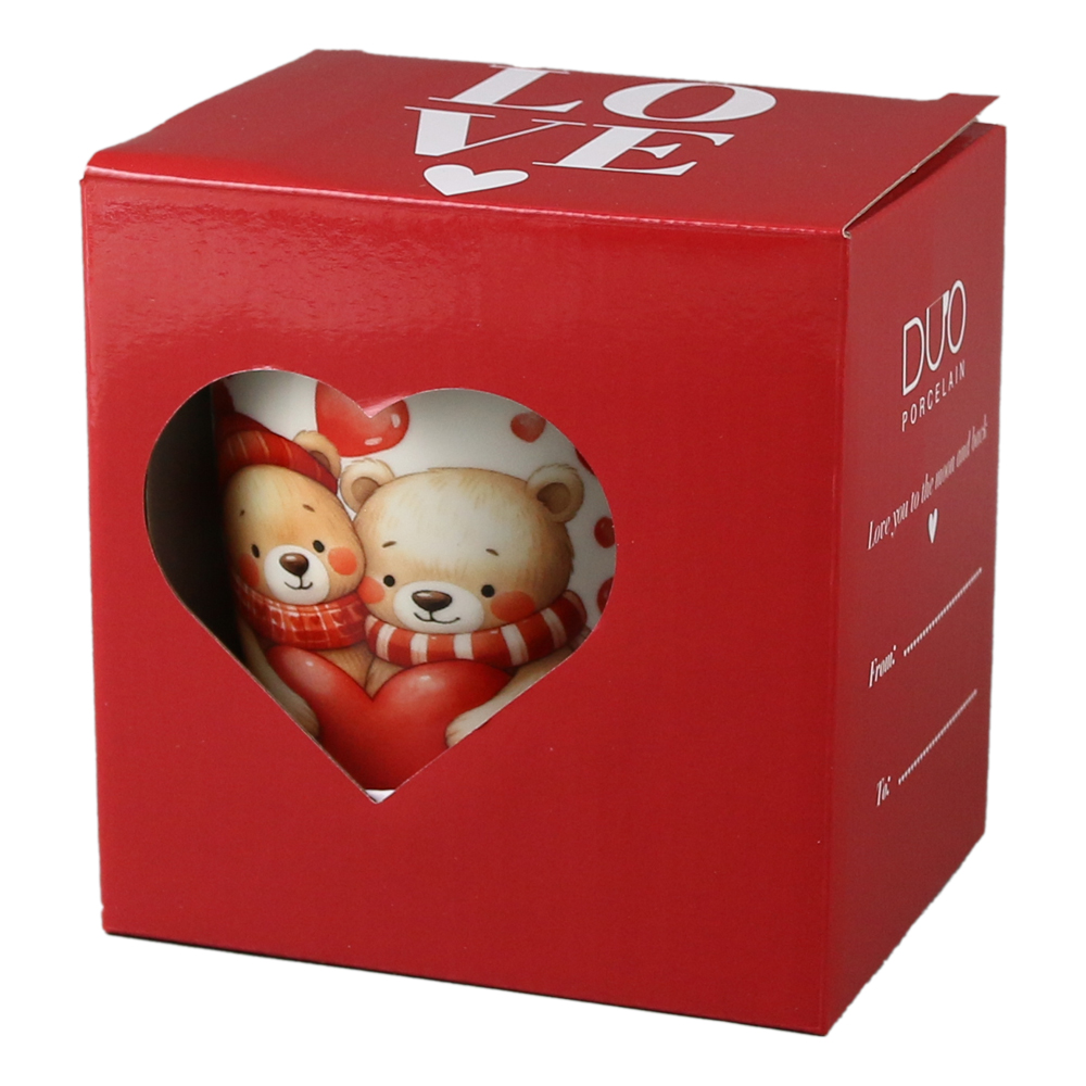 Cana portelan cu infuzor metalic si capac, 360 ml, Ursuleti cu inima, cu cutie cadou