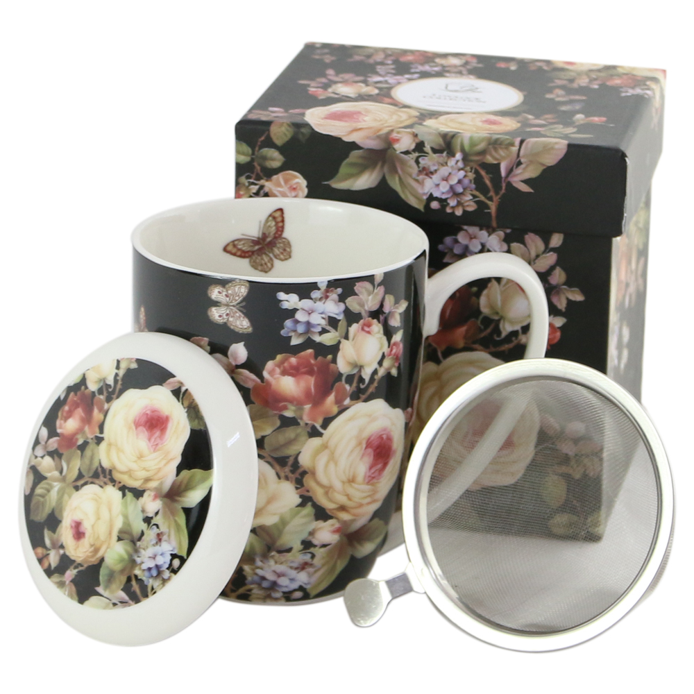 Cana portelan cu infuzor metalic si capac 380 ml, „Warda”, inclusa in seria FIVE O?CLOCK, este realizata din portelan New Bone China, caracterizata prin eleganta. Cana se afla intr-o cutie decorativa cu aceasi design si poate fi un cadou perfect celor dra