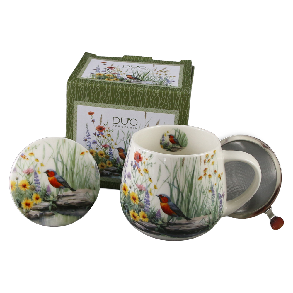 Cana portelan cu infuzor metalic si capac 430 ml „July” in cutie decorativa