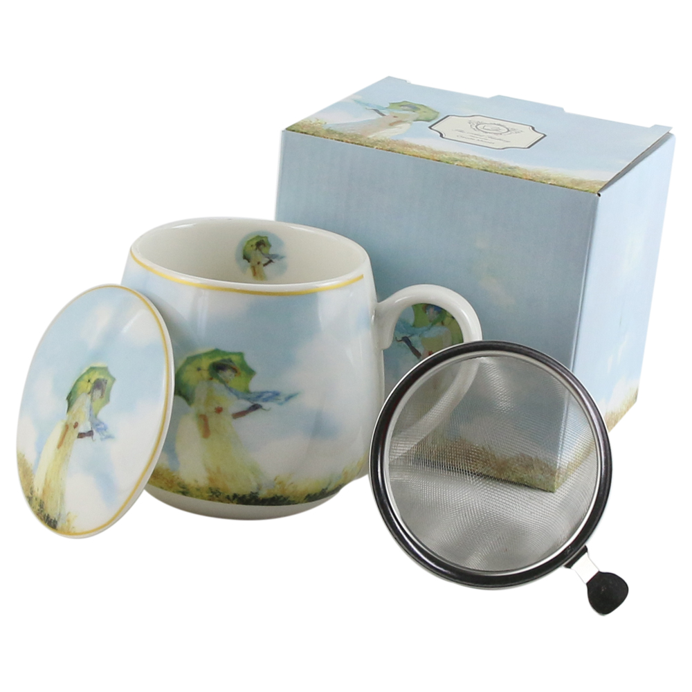 Cana portelan cu infuzor metalic si capac 430 ml,”Woman with Parasol” de Monet, in cutie decorativa