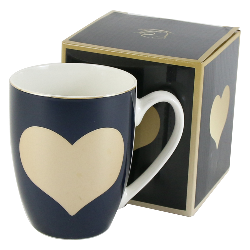 Cana portelan „Dark Blue, Big Heart”, 360 ml, in ambalaj decorativ