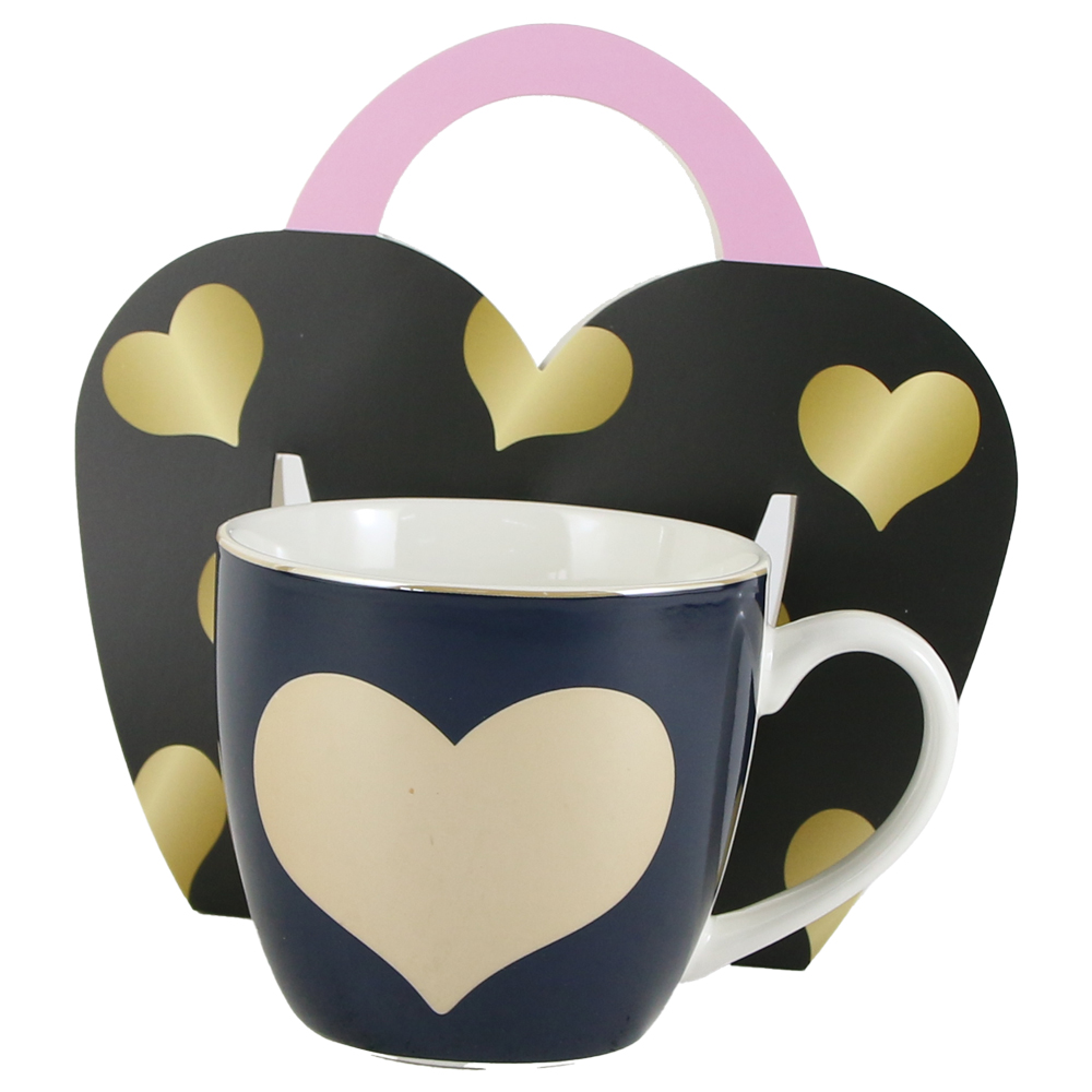Cana portelan „Dark Blue, Big Heart”, 460 ml, in ambalaj decorativ