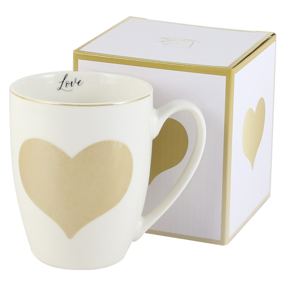 Cana portelan „Gold Heart”, 360 ml, in ambalaj decorativ