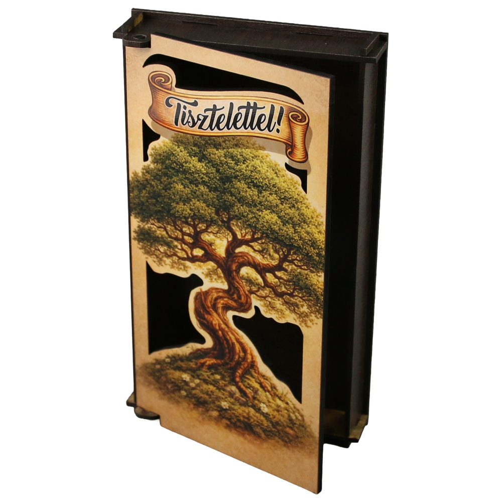 Caseta cadou din lemn pentru bani „Tisztelettel!” 17.5 x 10 cm