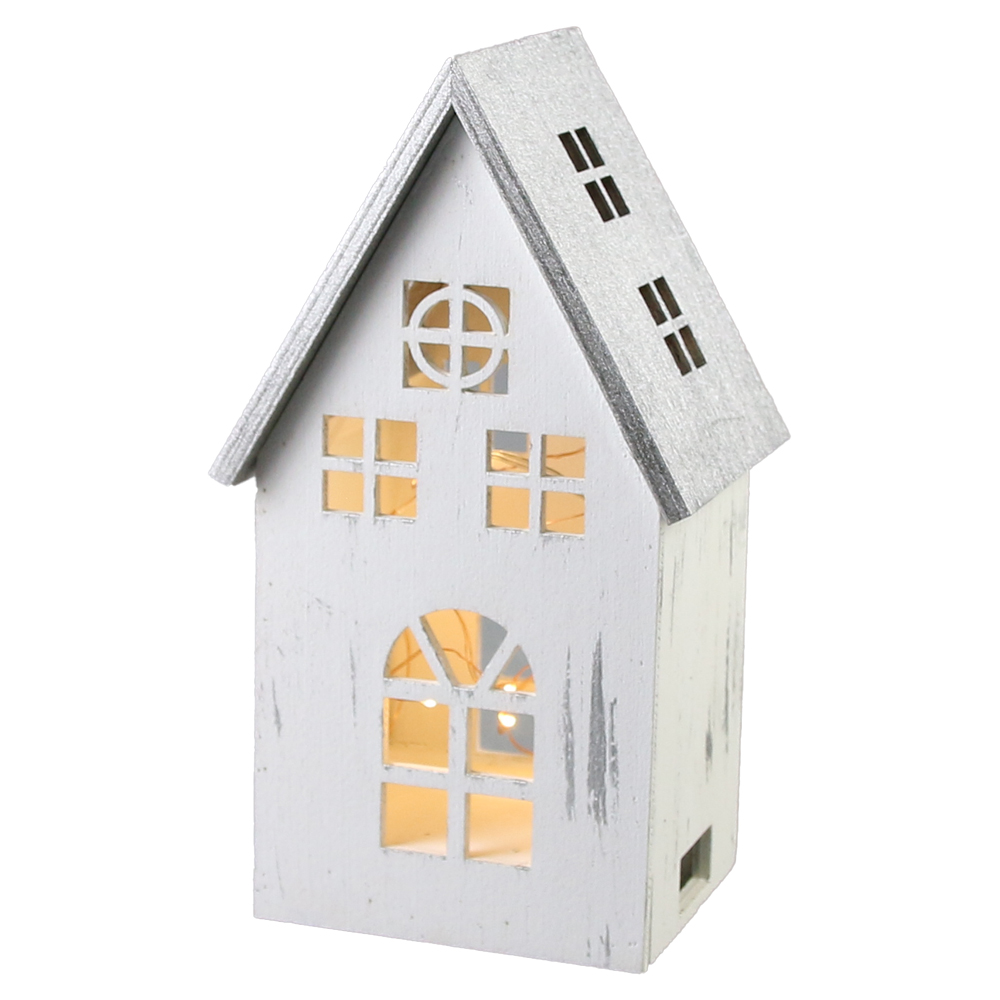 Casuta de Craciun cu led, din lemn 11×21 CM, Alb