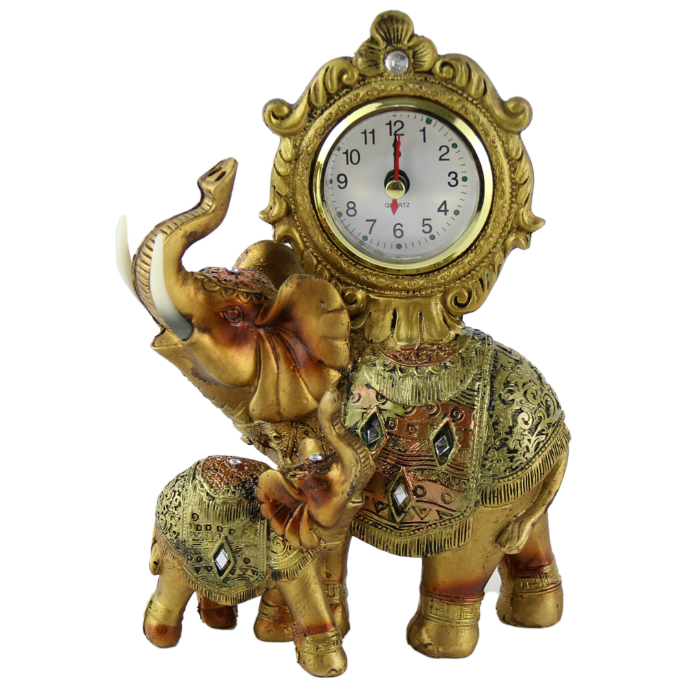 Ceas de masa din rasina aurie Elefanti 20 CM