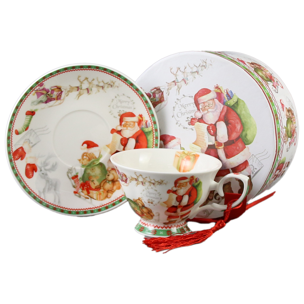 Ceasca cu farfurie de craciun din ceramica 150 ml, in cutie cadou, Mos Craciun