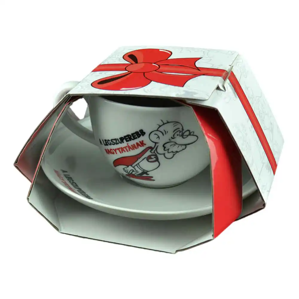 Ceasca cu farfurie din ceramica „A legszuperebb nagymamanak”, in ambalaj cadou