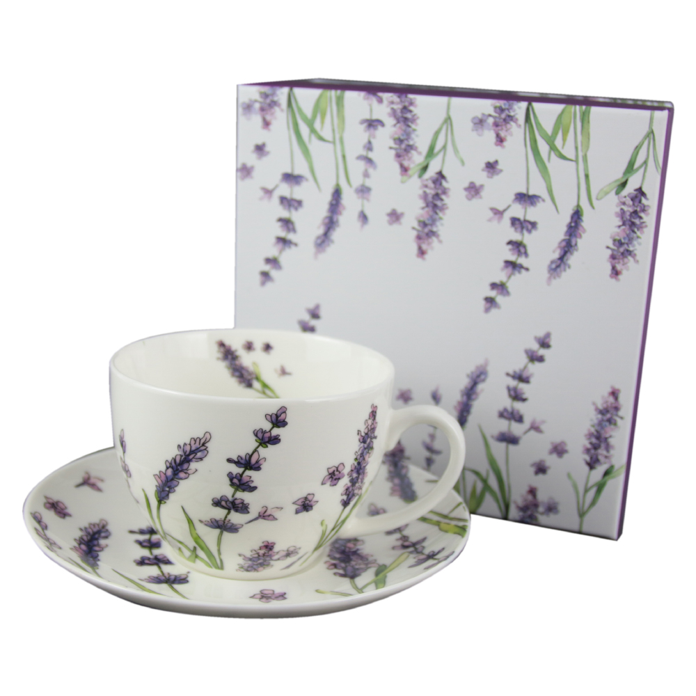 Ceasca cu farfurie portelan 250 ml Lavanda in cutie decorativa
