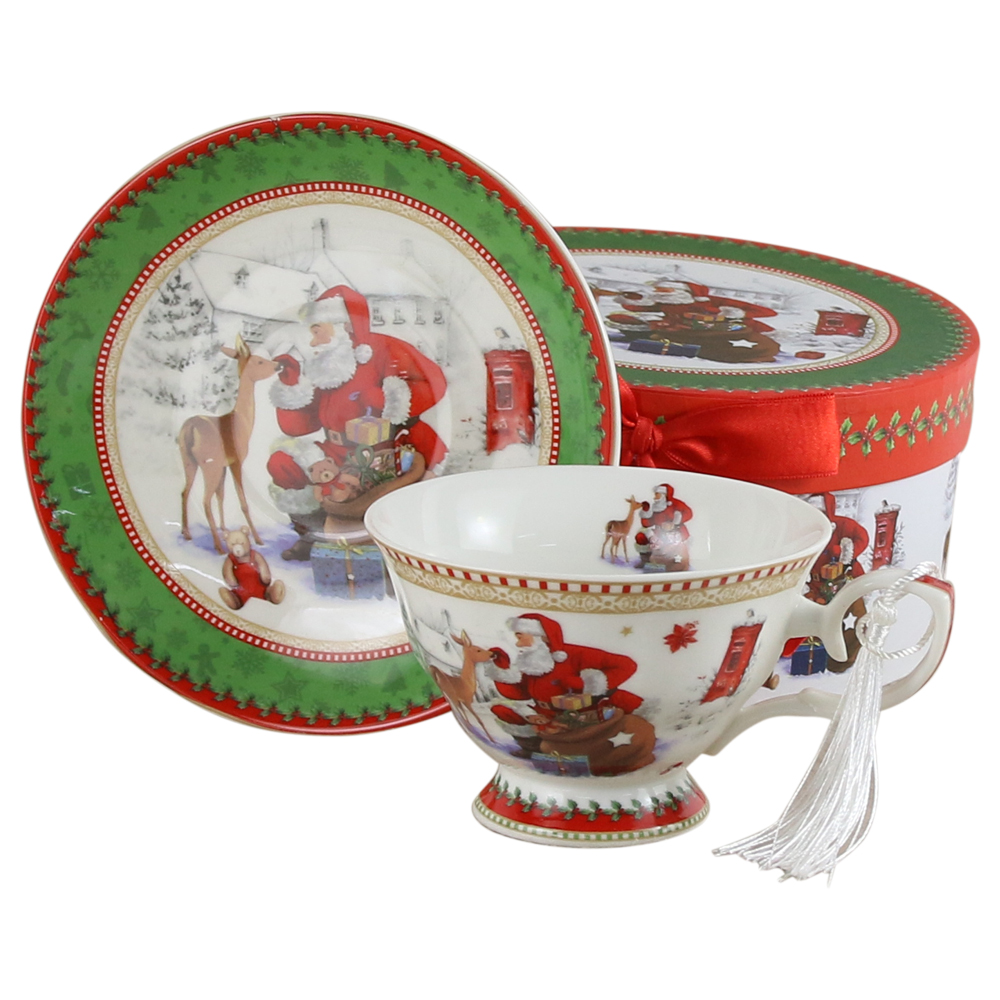 Ceasca din ceramica cu farfurie 150 ml, Mos Craciun, in cutie decorativa