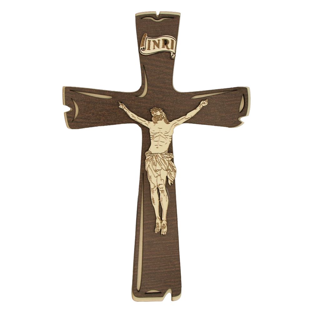 Cruce din lemn cu Isus rastignit 13 x 20 cm, maro