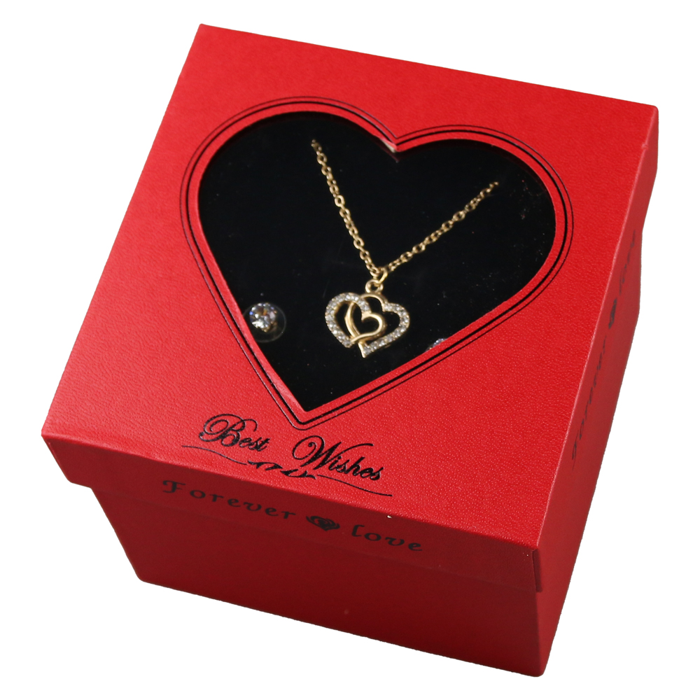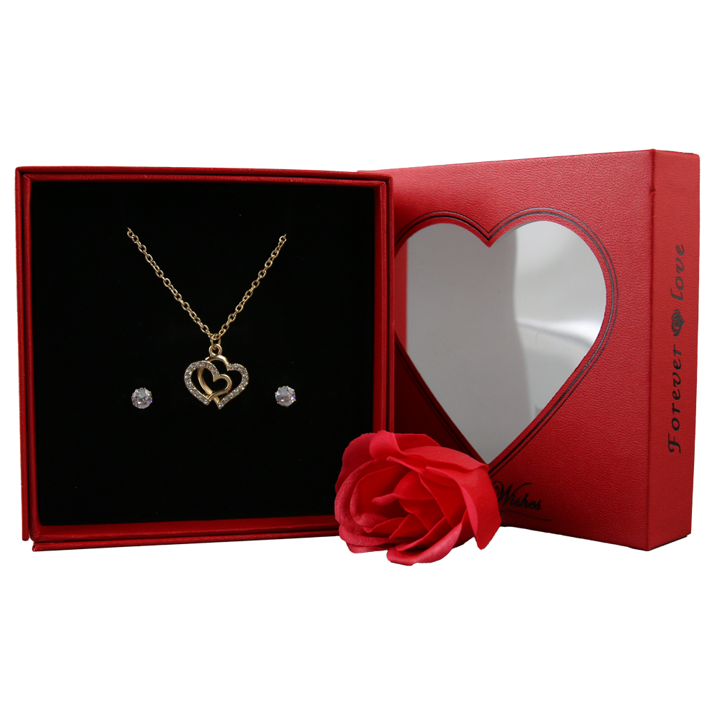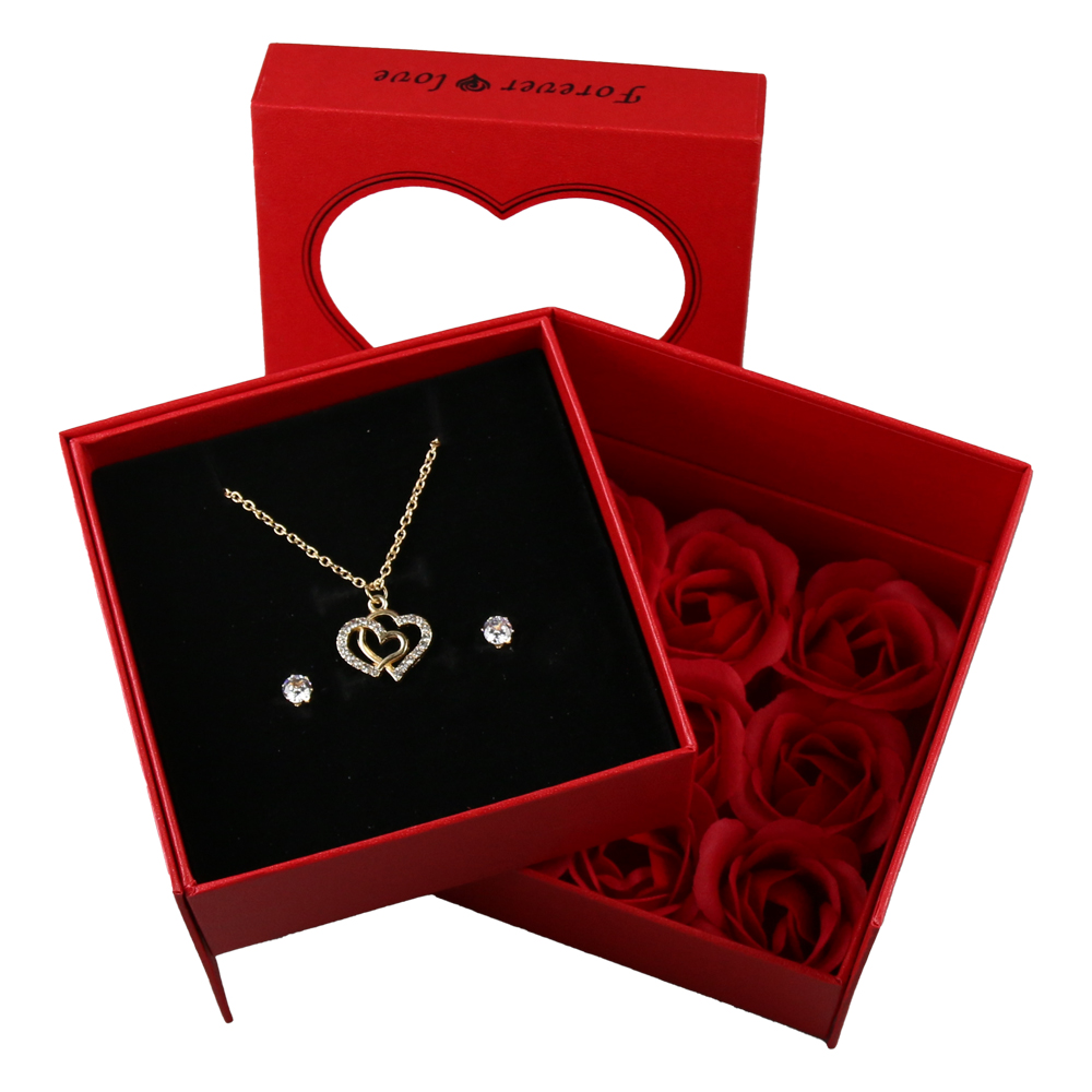 Cutie cu trandafiri, lant si cercei 11.5×11.5 cm, in cutie de cadou